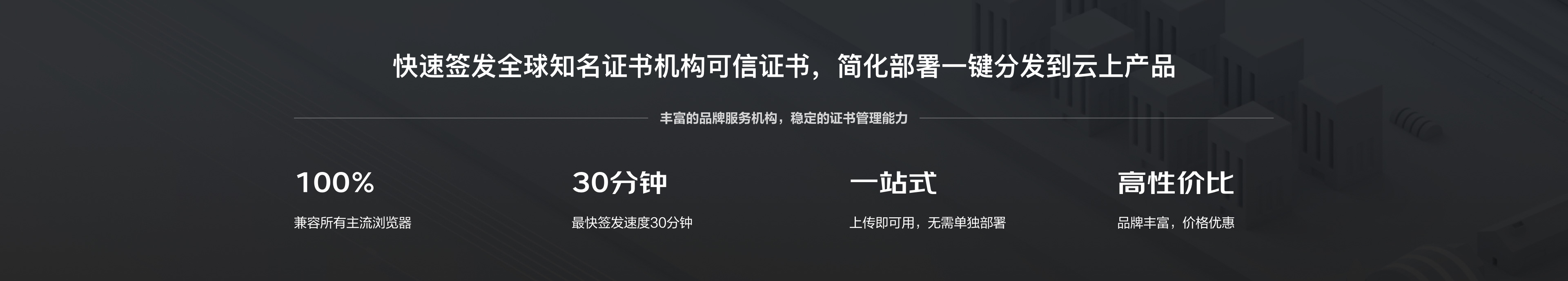 DV SSL 证书最快20分钟,OV SSL 证书最快6小时。支持在线自动 CSR 生成;域名身份可通过 DNS 自动验证,审核签发流程全自动。